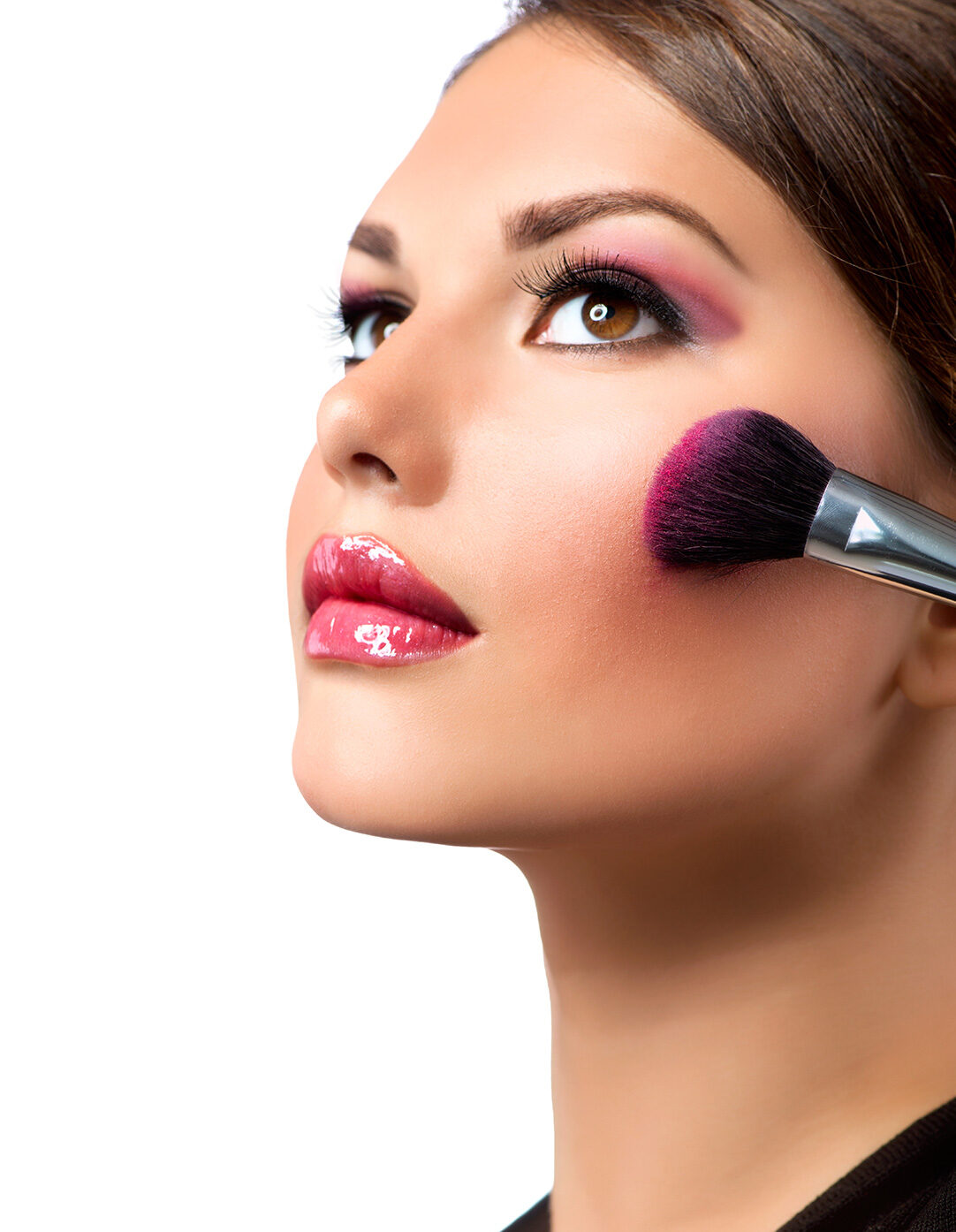 Sombra em pó: A sombra em pó geralmente é aplicada com um pincel de sombra para criar um efeito de sombra mais brilhante.